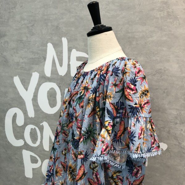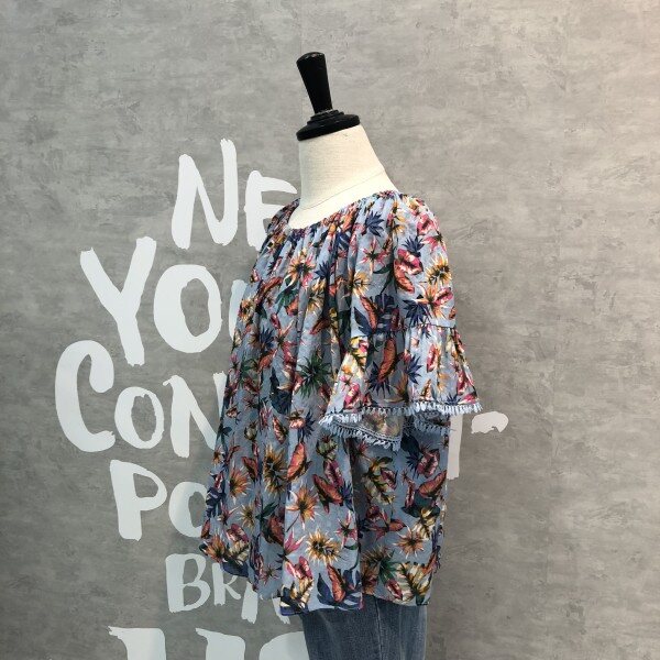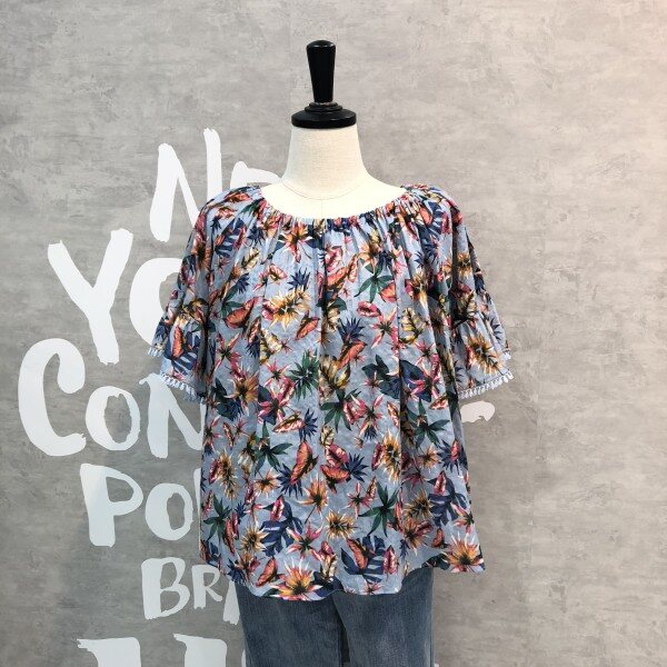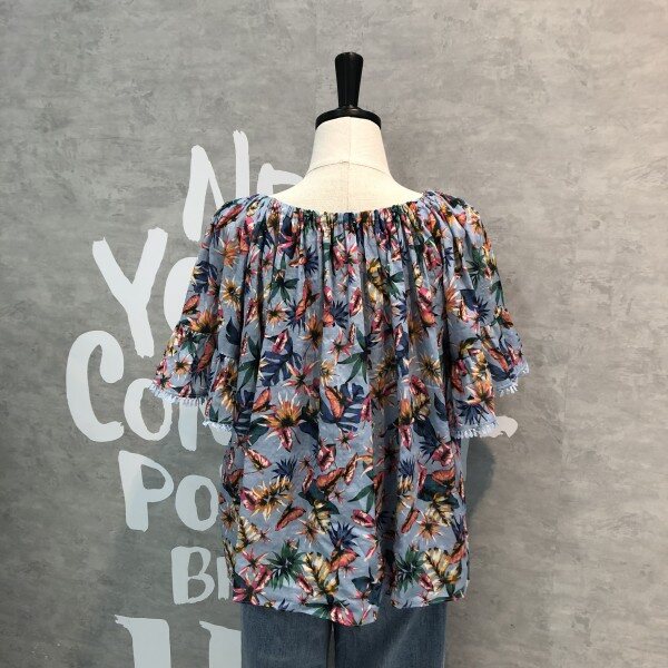 세련된 컬러감이 돋보이는 블라우스로 셔링이 포인트되어 발랄하고 여성스러운 느낌이 나고 오프숄더로도 코디가 가능한 아이템입니다