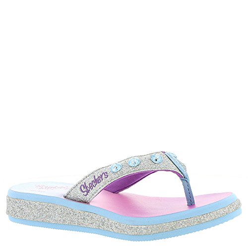 Skechers Girls' Twinkle Toes Sunshines Thong,Silver/Multi,US 12 M