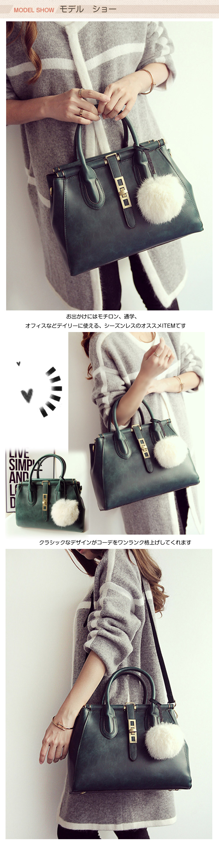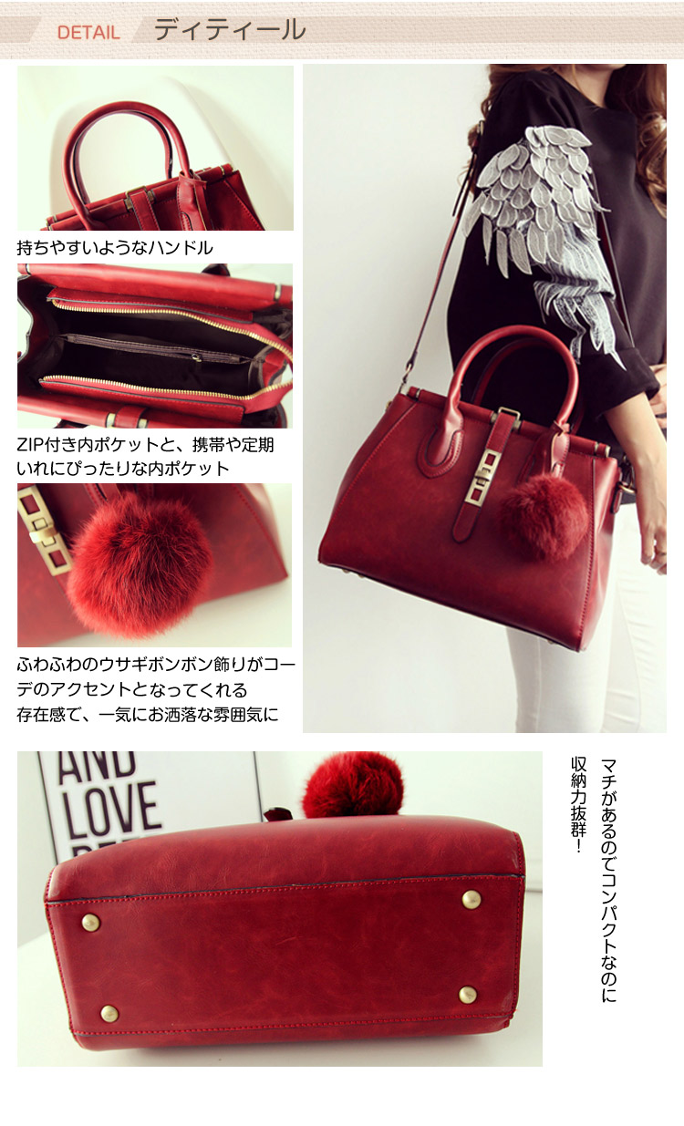 | かわいい2wayバッグ☆シンプルなデザインなのできれいめにもカジュアルにも対応できちゃう☆ファスナーポケットが有るので、ちょっとした小物なども収納OK?底しっかりとして型崩れも心配もいらないのが嬉しいね!ショルダーベルトが付属されていてその日のコーディネートによって、2WAYにアレンジできます。斜め掛けショルダーバッグにも、手持ちバッグとしても多様に対応します。クラシックなデザインがコーデをワンランク格上げしてくれます?お出かけにはモチロン、通学、オフィスなどデイリーに使える、シーズンレスのオススメITEMです☆ | |