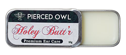 THIS PRODUCT CANNOT BE RETURNED. ALL AFTERCARE PRODUCTS ARE NON-RETURNABLE. Holey Butt'r is a premium ear care cream to maintain stretched ear lobes. Contains a natural blend of emollients and moisturizers including Karanja oil, Shea Butter, Jojoba Oil, and Soy wax.