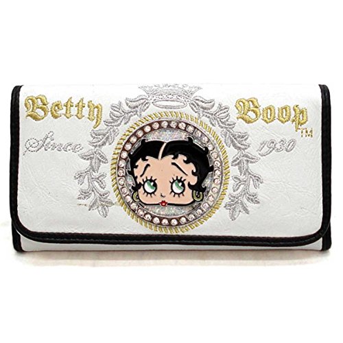 Binding : Apparel Product Description This is a Licensed BETTY BOOP New Design embroidered Face flowers on leather like PU MULTI -FUNCTION detachable CHECK BOOK HOLDER WALLET. Magnetic button closed, In the middle of Main wallet can put 6 credit cards and one picture window, under it, there are two slip in pocket for bills; on the left side of main wallet there are 2 slip in pockets for bills too on the back of the wallet 0