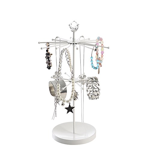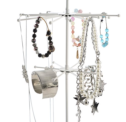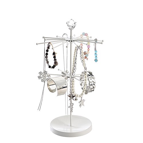 Giftway Modern White Metal Rotating Necklace Holder, Bracelet Stand Jewelry Tree Organizer
