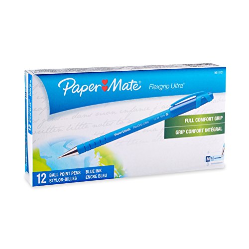 Paper Mate Flexgrip Ultra Stick Medium Point Ballpoint Pens, 12 Blue Ink Pens (9610131)