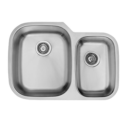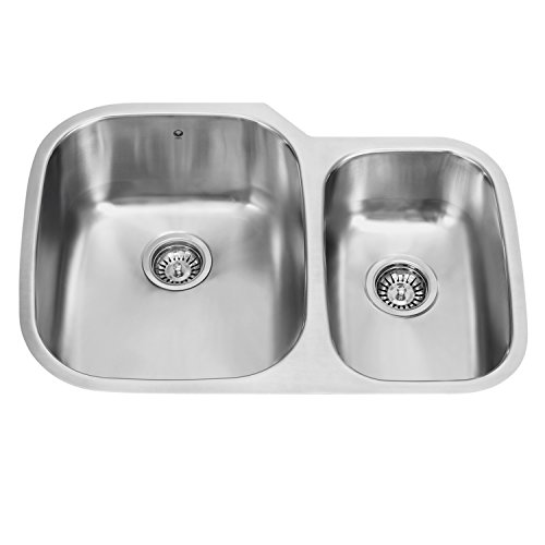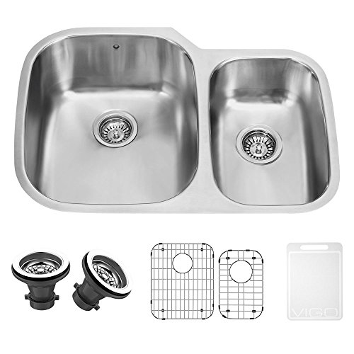 VIGO 30 inch Undermount 70/30 Double Bowl 18 Gauge Stainless Steel Kitchen Sink with Two Grids and Two Strainers