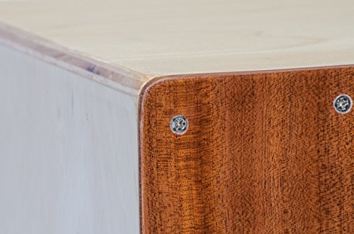 ADJUSTABLE TOP CORNERS AND INTERNAL STRINGS: Adjustable metal strings span against the inside of the playing surface to add a snare sound and are tuned from the bottom of the cajon (hex key included inside). To alter the amount of "slap" sound from corner hits, the screws located closest to the top corners may be loosed or tightened to vary the amount of gap between the playing surface and cajon body.