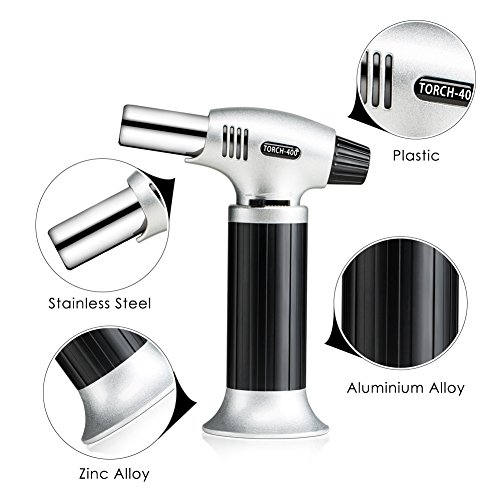Culinary Butane Torch, Refillable Kitchen Blow Torch with Safety Lock & Adjustable Flame for Creme Brulee, Meat, Seafood (Butane not included)