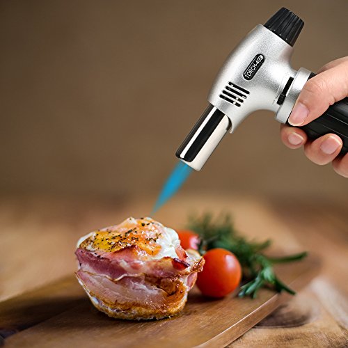 Do you want to cook delicious dessert and impress your friends and family as a professional chef? A kitchen torch is the best choice for you. Ideal for caramelizing sugar atop creme brulee, glazing a baked ham, searing a steak, roasting bell peppers, melting cheese and toasting bread crumbs