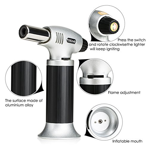 Portable: The butane torch is smalle and lightweight, with its ergonomic handle, very easy to hold Max 1300 celsius/2500 fahrenheit ultra high temperature, built-in turn knob Adjust flame can quickly baked caramel. Easy to use , easy to fill and easy to light