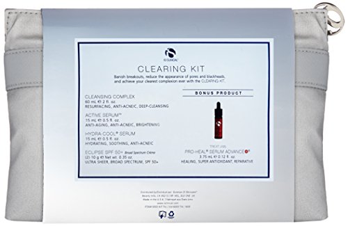 Banish breakouts, reduce the appearance of pores and blackheads, and achieve your clearest complexion ever with the CLEARING KIT. Kit Contains: 1. CLEANSING COMPLEX (60 mL ℮ 2 fl. oz.) 2. ACTIVE SERUM (15 mL ℮ 0.5 fl. oz.) 3. HYDRA-COOL SERUM (15 mL ℮ 0.5 fl. oz.) 4. (2) ECLIPSE SPF 50+ (10 g ℮ Net wt. 0.35 oz.) 5. BONUS: PRO-HEAL SERUM ADVANCE+ (3.75 mL ℮ 0.12 fl. oz.)Feature