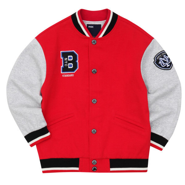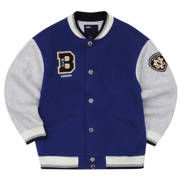 C/P분또 소재의 오버핏 유니 엠블렘 야구점퍼몸판과 소매 배색을 주고, 가슴자수 와펜과 소매 방패와펜으로 포인트른 준 상품