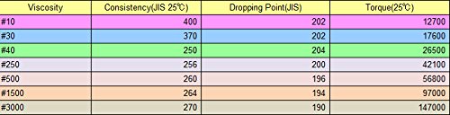 Helicoid Grease #30 : Consistency(JIS 25℃) : 370 / Dropping Point(JIS): 202 ℃ / Torque(25℃) : 17600 N·m / 15ml