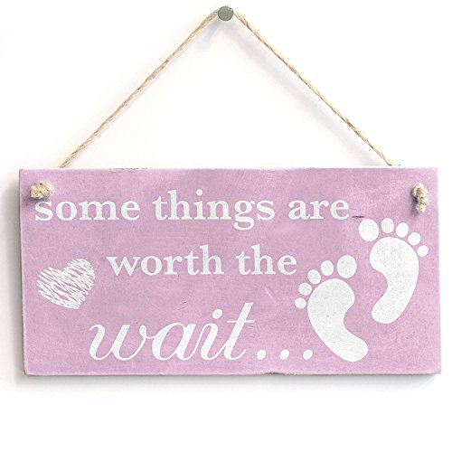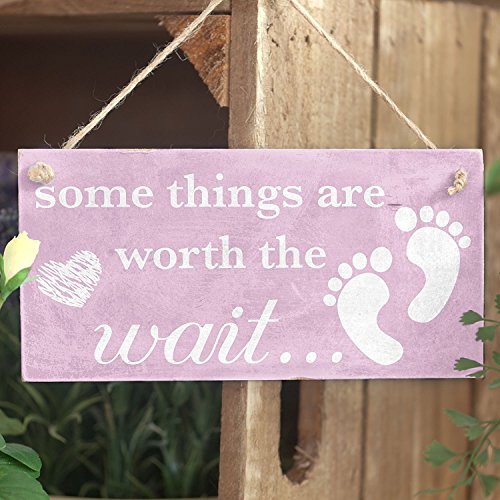 Meijiafei Some Things Are Worth The Wait... Baby Girl - Vintage Sign / Plaque 10"x5"