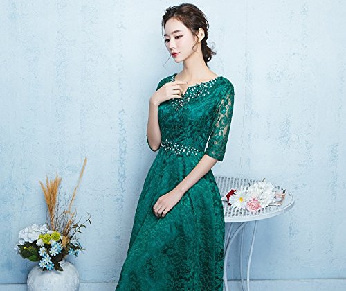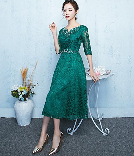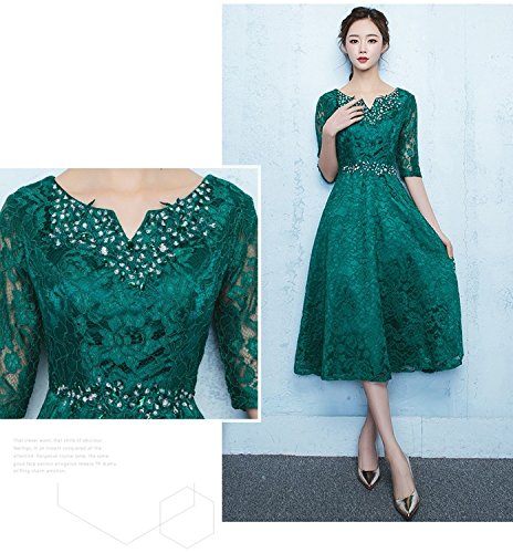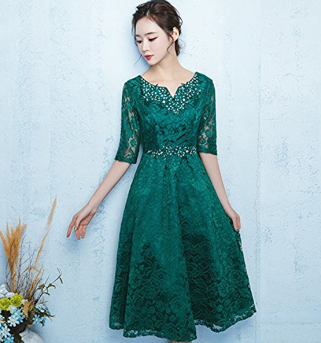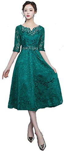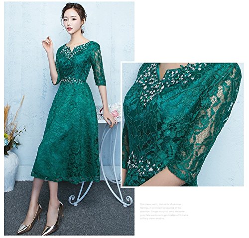 -. Title : ミディ丈 Vネック 半袖 スレンダーライン 総レース フォーマル ドレス レディース グリーン [並行輸入品]