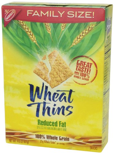 -. Feature : Discover the delicious 100% whole grain crunch of Reduced Fat Wheat Thins snacks. / Reduced Fat Wheat Thins are toasted instead of fried and contain 30% less fat than original Wheat Thins--making them a smart snack choice for any occasion. / These delicious crackers pair perfectly with cheese, fruit, spreads, and more--but are great all on their own. / Each 14.5-ounce Family Size box is sealed to lock in freshness and great taste for gatherings, parties, or simply snacking around the house. / This package includes one 14.5-ounce box of Reduced Fat Wheat Thins Crackers.