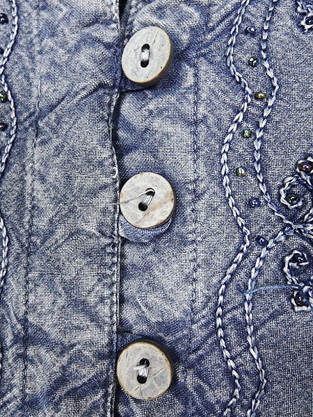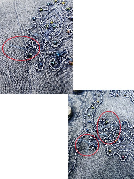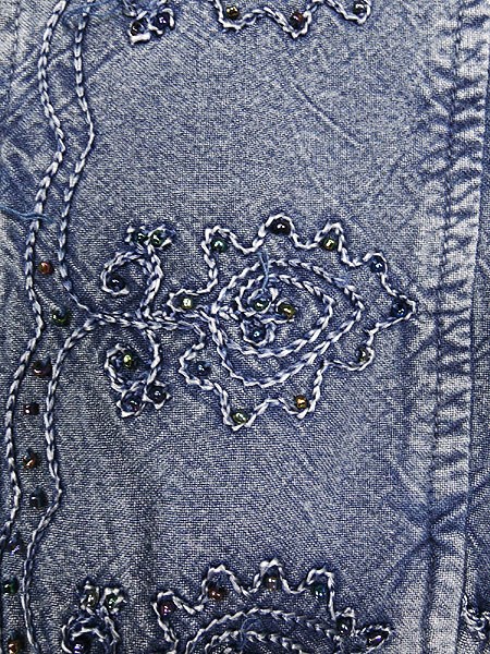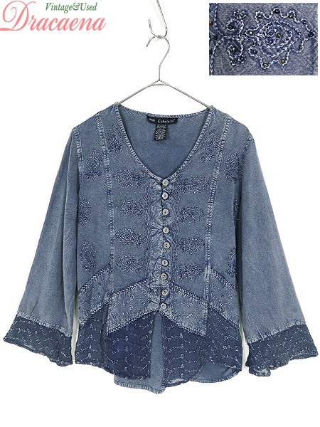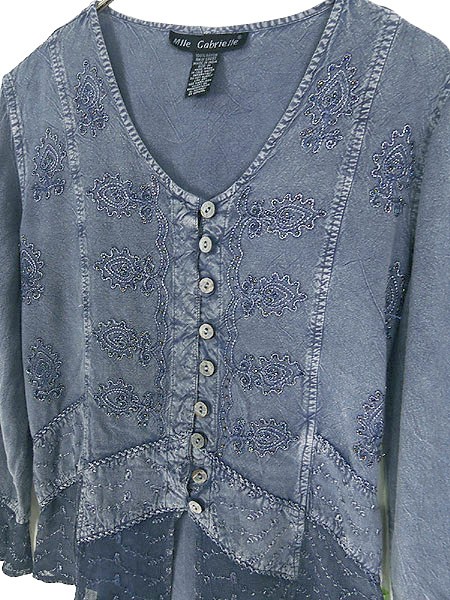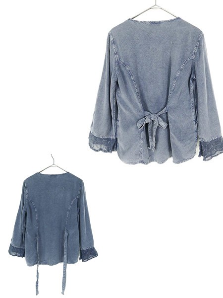 Ladies ブランド- カラー青 メール便不可 コンディション★★★ 素材レーヨン 表記サイズM スタッフコメント全体、ビーズが取れている部分があります。後、右背中付近に白い色落ちのようなヨゴレあり。 実寸サイズ 着丈 58 cm 身幅 48 cm 肩幅 38 cm 袖丈 47 cm ※ウエスト・ヒップ以外は平置き採寸