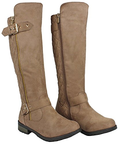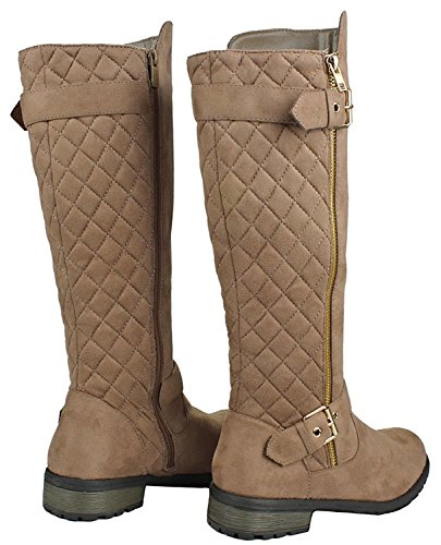Forever Mango-21 Women's Winkle Back Shaft Side Zip Knee High Flat Riding Boots Taupe Nubuck 6
