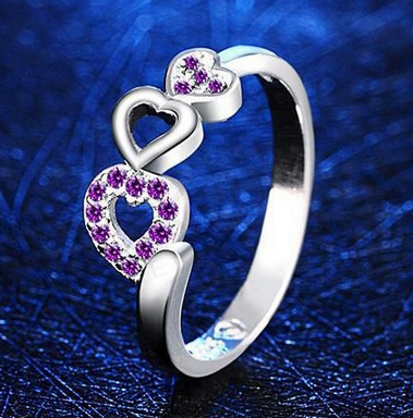 cincin cantik love Hati kristal ungu Perhiasan perempuan perak New heart crystal violet wedding rings women party Jewelry sterling silver rings JEW SJA0846535262 GHJ qty000