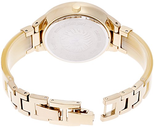- Feature : Round bangle watch with horn-colored resin dial frame, Swarovski crystal hour markers, and champagne sunray dial / Japanese quartz movement with analog display / Protective mineral crystal dial window / Features jewelry clasp closure / Water resistant to 99 feet (30 M): withstands rain and splashes of water, but not showering or submersion