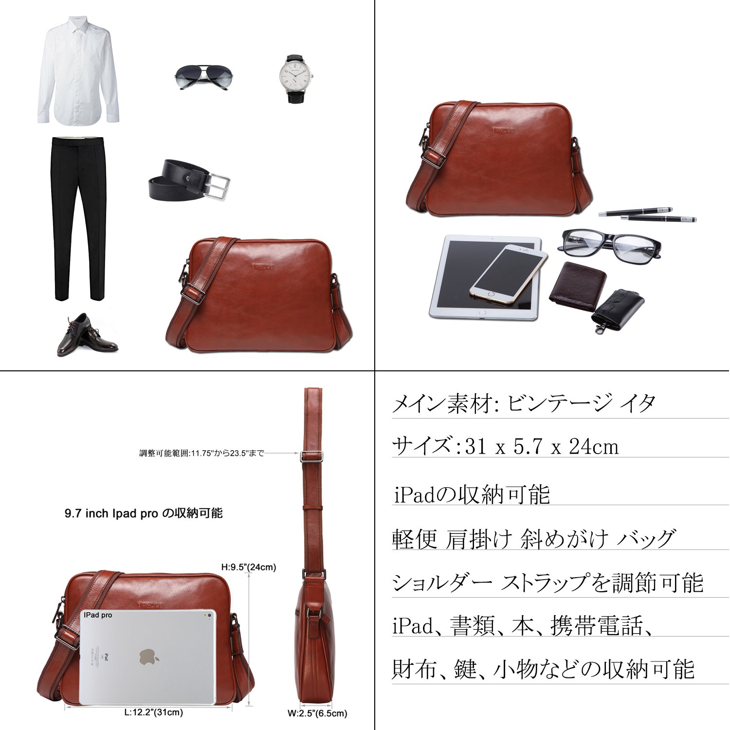 You can store iPad, documents, books, mobile phones, wallets, keys, accessories etc.