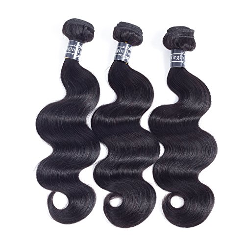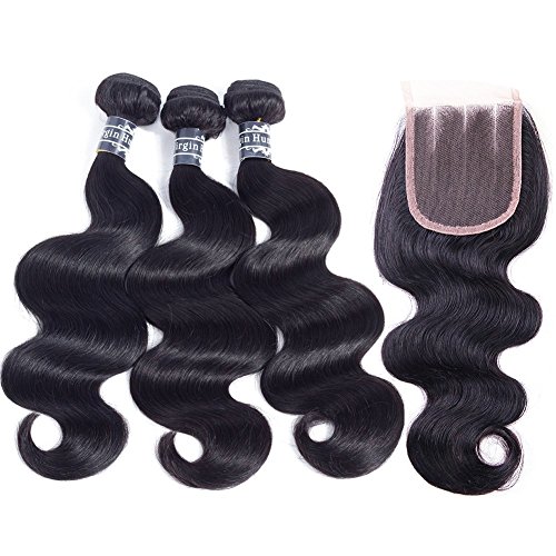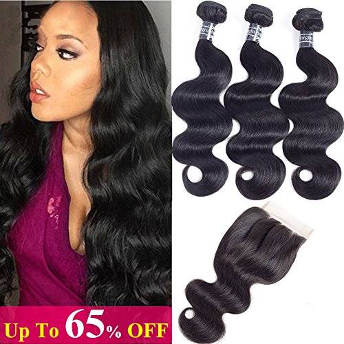Amella Hair Brazilian Virgin Body Wave Hair 3 Bundles with Three Part Closure (14 16 18+12,Natural Black) 8A 100% Unprocessed Brazilian Body Wave Human...
