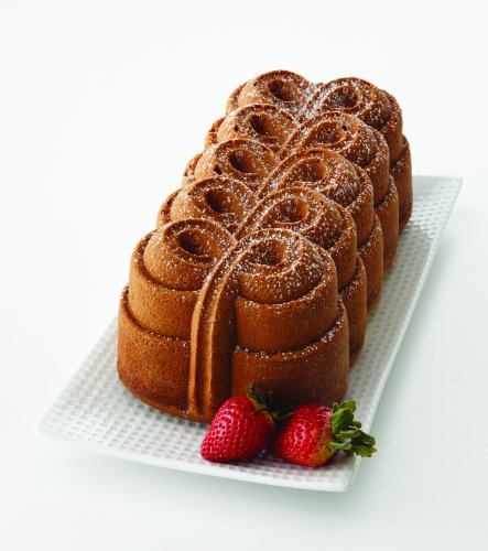 - Feature : Intricate ribbon design cake or bread pan; every detail will bake out to perfection / Made from heavy duty cast aluminum; measures 13 by 5-1/2 by 3-1/2-inch / Unique copper color / Easy release, non-stick coating for ease of baking and cleanup / Dishwasher safe; 25-year warranty