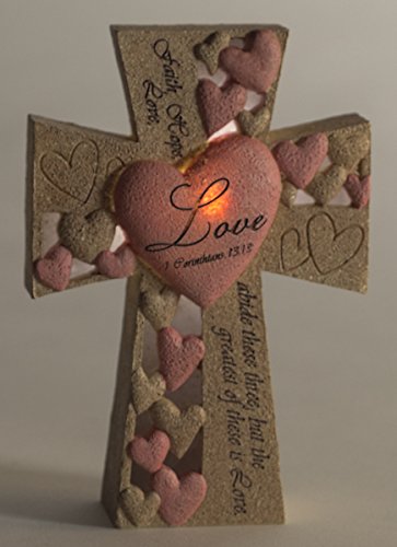 Faith Hope Love Heart Pink Sand 6 Inch Resin LED Light Up Tabletop Cross
