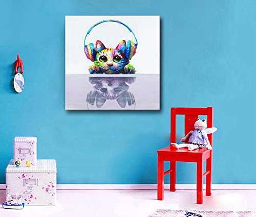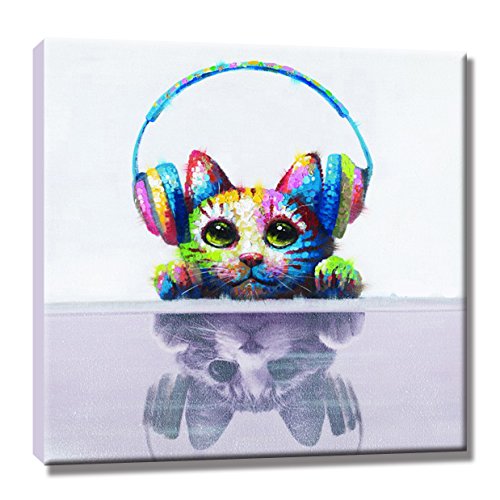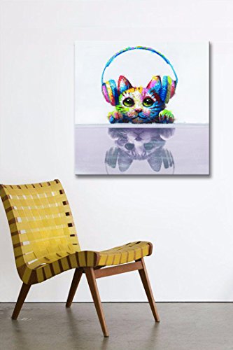 -. Binding : Kitchen -. Brand : SEVEN WALL ARTS -. IsAutographed : 0 -. Label : SEVEN WALL ARTS -. Manufacturer : SEVEN WALL ARTS -. ProductGroup : Home -. ProductTypeName : HOME -. Publisher : SEVEN WALL ARTS -. Studio : SEVEN WALL ARTS -. Title : SEVEN WALL ARTS - 100% Hand Painted Oil Painting Animal Cat with Headset with Stretched Frame For Home Décor