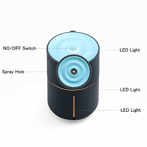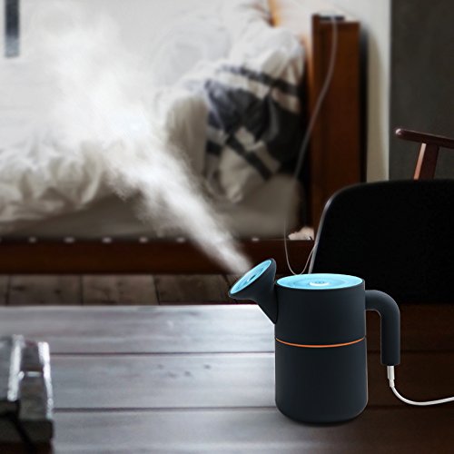 Woleyi 200ml Kettle Shape Cool Mist Air Humidifier with Auto Off Ultrasonic Diffuser LED Night-Lighting and 4-5 Hours Diffusing for Home and Office Essential