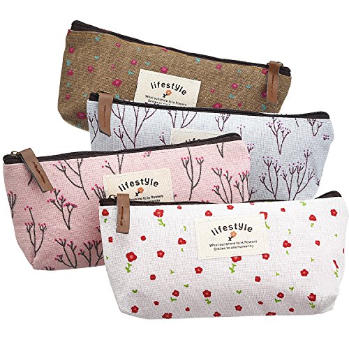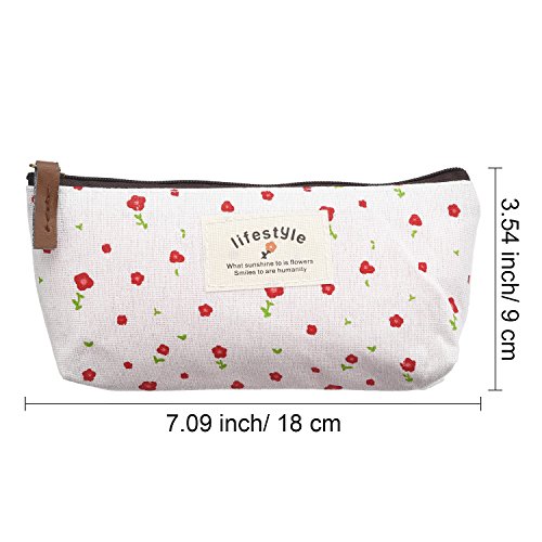 TecUnite 8 Pieces Pen Case Pencil Bag Multiple Flower Floral Canvas Pencil Pen Case Pen Holder Cosmetic Makeup Bag Set