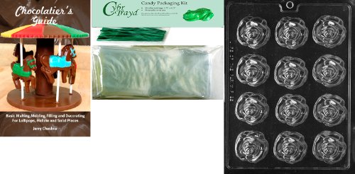 Cybrtrayd MdK50GRBk-F086 Medium Open Rose Fruits and Vegetables Chocolate Candy Mold with Chocolatier's Bundle, Includes 50 Cello Bags, 50 Green Twist Ties and Chocolatier's Guide