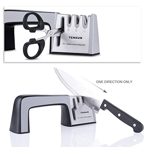 Tensun Kitchen Knife Sharpener - Blade Professional Scissors Sharpener, 4 Stage Tungsten Steel, Damond and Cermaic Sharpening Rods System with Ergonomic Handle