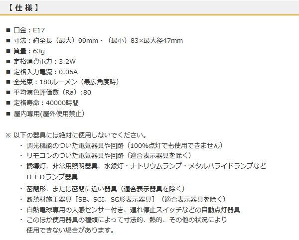 fk094igrjsレンズをスライドさせることで、光を自由に集光・拡散できます口金E17の電球色です屋内でのみご使用いただけます サイズ 個装サイズ:5.1×11.7×6.1cm 重量 個装重量:80g 仕様 取扱説明書(パッケージ記載) 生産国 中国 リビングやオフィス、ショーウィンドウのスポットライトとして レンズをスライドさせることで、光を自由に集光・拡散できます口金E17の電球色です屋内でのみご使用いただけます