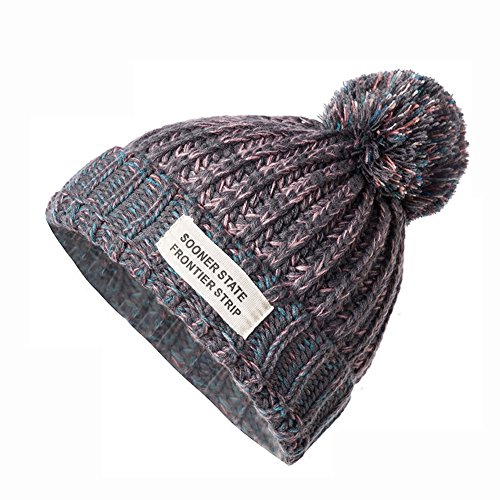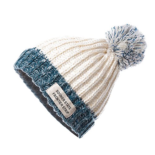 IHHASD Women Winter Skull Beanies Outdoor Warm Chunky Knit Hats with Fur Pom Pom