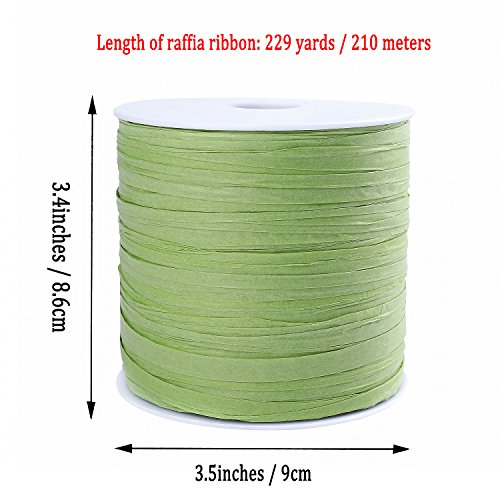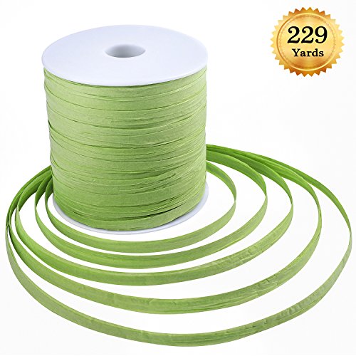 Whaline 229 Yards Raffia Paper Craft Ribbon Green Packing Paper Twine, 1/4 Inch