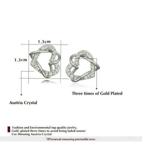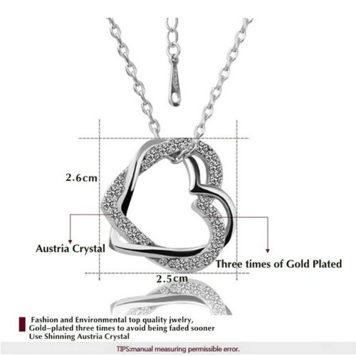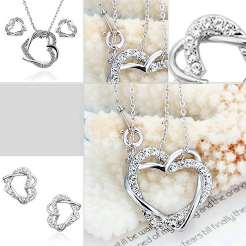 - Title : Yoursfs Fashion Rhinestone Double Heart Necklace and Earring Sets 18k Gold Plated (white-gold-plated-silver)