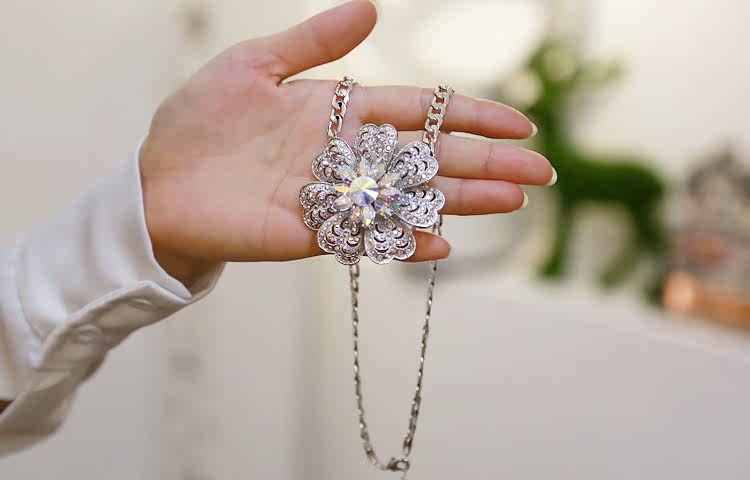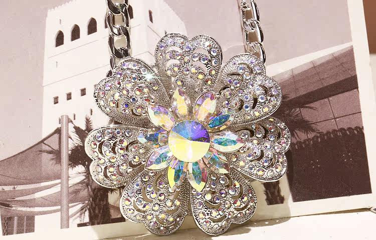 dimensions: length of 44CM diameter of Flower Pendant 5.5CM. long chain 4CM.