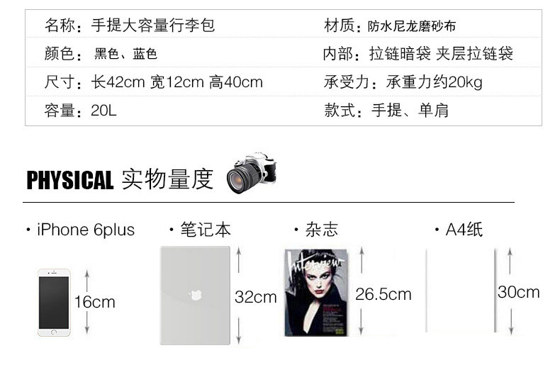 Item no: HISLXD01 Suitable: youth Gender: male texture: Oxford Spinning carry parts type: soft handle Color Classification: black dark blue with or without lever: no Whether to be collapsible: yes Applicable scene: Casual bag size: big Brand: Porter style : Japan and South Korea Travel Bag Type: Bag-type Shoulder Strap Style: Strapless Material: Cotton