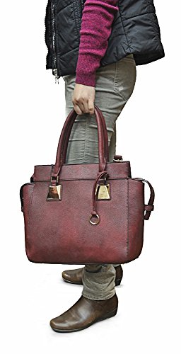 Product Description Open wide ... wider. No, you're not at the dentist. You're just experimenting with exactly how much space this fashionable tote actually has. Your jaw-dropping gape can't compete with the cavernous opening of this beauty. With multiple interior pockets, and a special backed zipped pouch, you may wonder why you need so much room. But don't fret about that. This purse will be put to full use before you know it. Available in a variety of rich colors and crafted of textured man-made vegan leather, this is one accessory you soon won't be able to live without 0