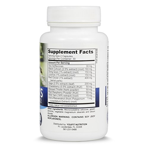 SUPPORTS – A Healthy Normal Menopausal transition with Black Cohosh, Wild Yam, Sage Leaf and Trans-Resveratrol (from Polygonum Cuspidatum extract) Root and others without the use of Harsh alternatives