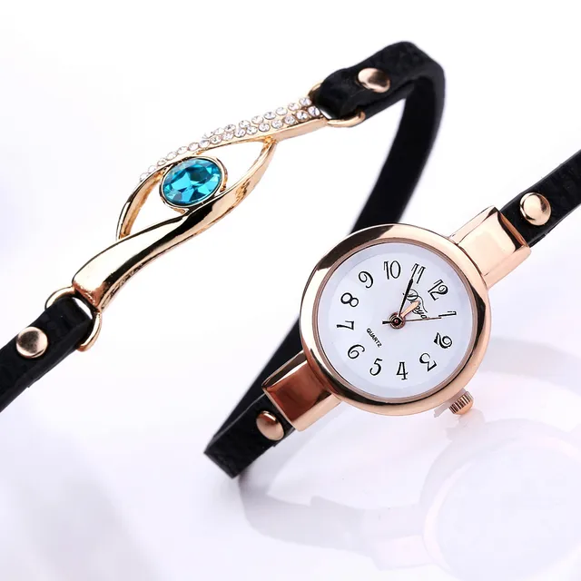 | [해외] 럭셔리 골드 눈 보석 드레스 시계 여성 골드 팔찌 시계 여성 가죽 석영 손목 시계 |