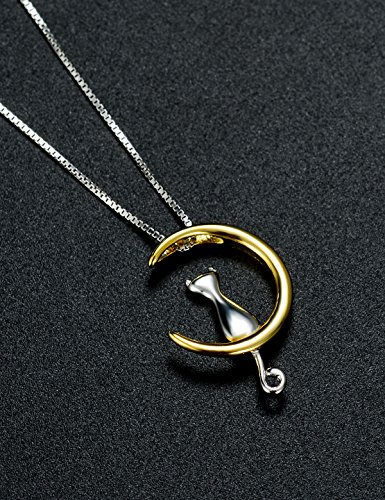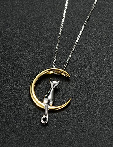 This cat on moon pendant necklace is made of Sterling Silver. The super cute cat shows how much you love your cats and you really miss it. The vivid kitty pendant necklace also adds a hint of fun to your daily outfits. It is a perfect gift for the person who loves cats.