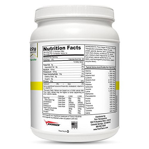 NON-GMO Yellow Pea Protein sourced from Canada, Containing 22 Grams of Protein Per Serving. Containing: L-glutamine, glycine, and taurine. Also added is Aminogen® -a patented, natural, plant-derived enzyme system clinically proven to increase protein digestibility and amino acid absorption. This enzyme blend is used to increase nitrogen retention. Provides 8 grams of Fiber (inulin from non-GMO chicory). Manufactured in the USA in a GMP-certified facility, for guaranteed quality and potency!