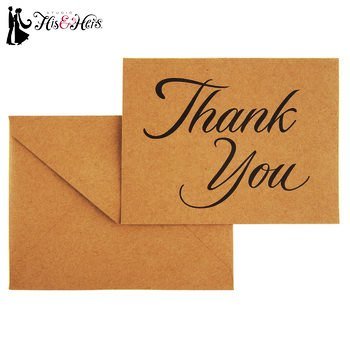 Kraft & Black Thank You Cards & Envelopes, 50 sets, Blank Inside, Wedding, Office, Business, All Occasion