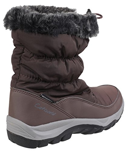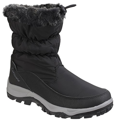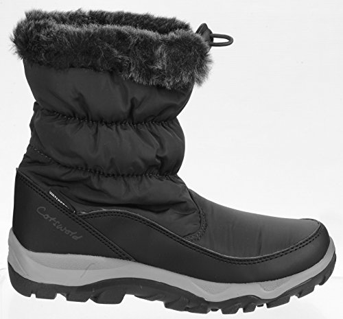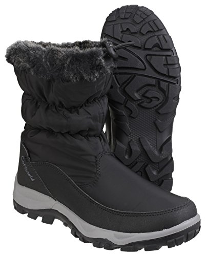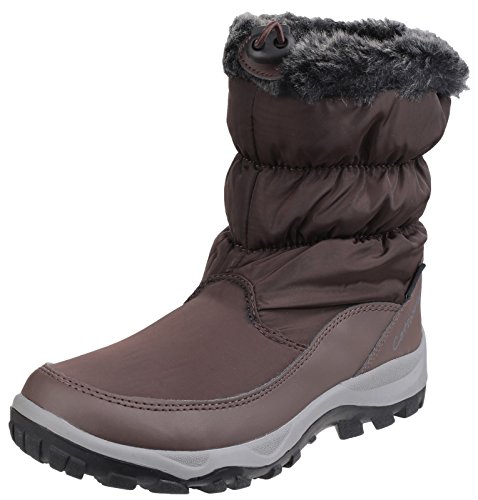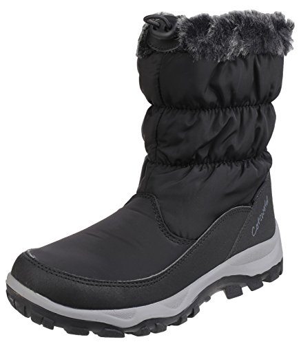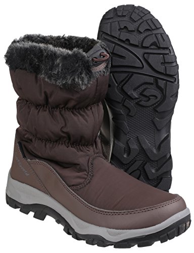 Binding : Apparel Product Description Womens winter boots. Lightweight. Waterproof. Supple pull up, ankle-high upper with functional insulation. Fur trim. Elasticated tie-top with dual metallic eyelets and adjustable cord lock. Snug collar fit with deep filled faux fur trim. Warm microfiber fleece lining. Soft lined footbed for added comfort. Water resistant PU rand and tensioned heel rand. Part waterproof and breathable membrane helps keep feet dry. Sturdy rubber outsole with deep grooves to channel fluids away. Upper: Textile. Lining: Fleece. Sole: TPR. 0