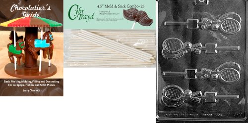 Cybrtrayd 'Tennis Racquet Lolly' Sports Chocolate Candy Mold with 25 4.5-Inch Lollipop Sticks and Chocolatier's Guide