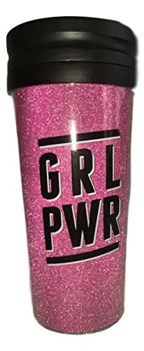 - Carry your drinks in style with this awesome GRL PWR travel mug •Gorgeous sparkly pink and black design •Features a double-wall construction and insulation that keeps hot drinks hot and cold drinks cold •Durable, break-resistant BPA-free plastic tumbler with screw-on lid •Fits in most car cup holders 16 oz capacity