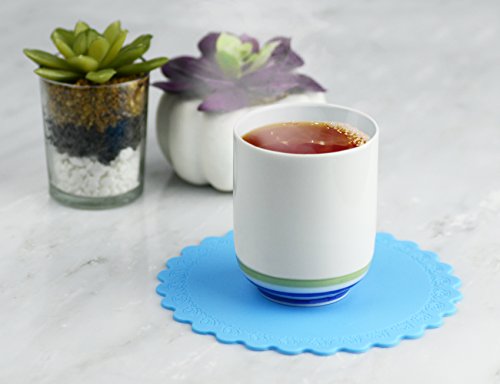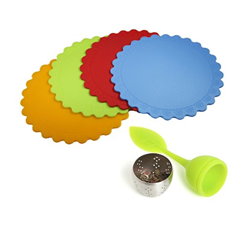 Silicone Coaster 4 PC of Heat Resistant Cup Mat Insulation Pad, Bowl, Pan, Wine, or Beverage Holder - Microwaveable Dishwasher Safe With Free Silicone Tea Infuser for Your Perfect Evening Tea Combo