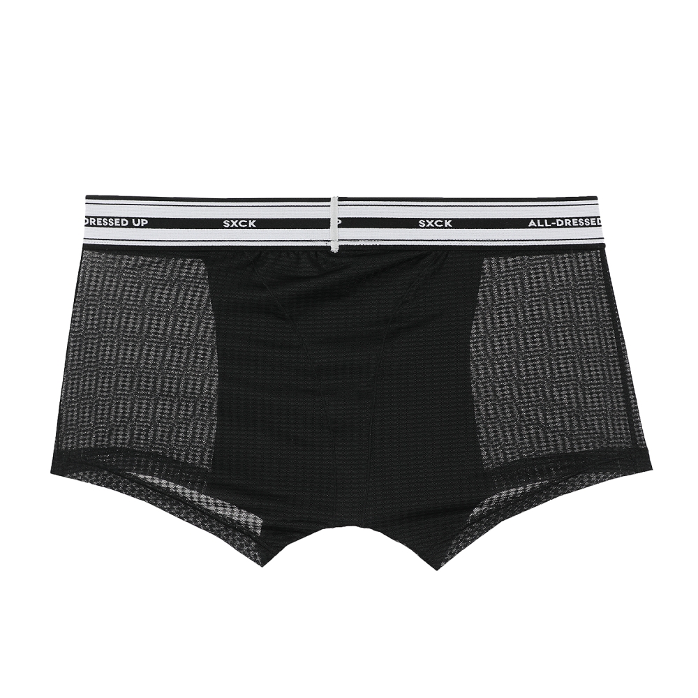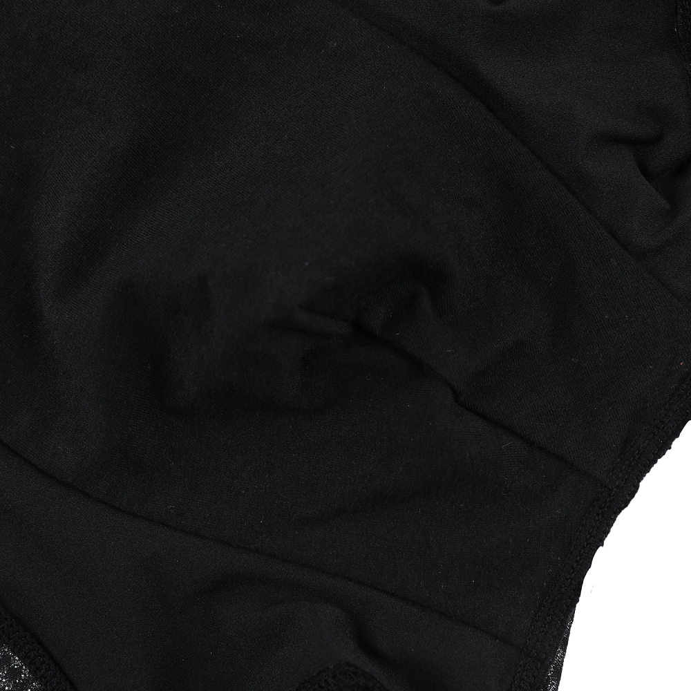 시크한 블랙컬러에 밴딩 디테일로 포인트를 넣어 섹시함과 캐쥬얼한 느낌을 동시에 연출한 제품. 시스루한 쟈가드 소재 사용으로 뒷판에 T팬티를 입은것처럼 연출하여 섹시함을극대화 한 제품.
