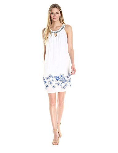 -. Title : Robbie Bee Women's Embriodered Gauze Shift Dress with Beaded Neckline White Royal 6 [並行輸入品]