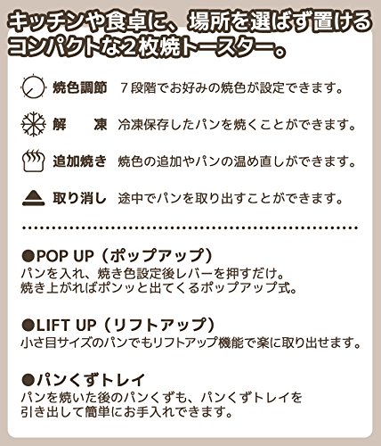 밖은《사쿠사쿠》,중은 부드럽게.따끈 따끈 빵을 즐길 수 있습니다.◆키친이나 식탁에,장소를 선택하지 않아 쓰이는 컴팩트한2매소토스터밖은《사쿠사쿠》,중은 부드럽게.따끈 따끈 빵을 즐길 수 있습니다.◆POP UP(업)빵을 만들어 넣음(담는 그릇·상자 등),구이색 설정후 레버를 누르는 것 뿐(만,만큼).잘 구워지면 폰《》과 나오는 업식.◆LIFT UP(리프트 업)작음 눈(째)크기의 빵에서도 리프트 업 기능으로 편안히 꺼낼 수 있습니다.◆빵 칡 트레이 빵을 구운 후의 빵 칡도,빵 칡 트레이를서랍고 간단하게 손질에 옵니다.◆소색조 절다이얼7단계에서 좋아하는소색이 설정에 옵니다. / ■ 사양 ■본체크기(약):폭16.5×(길이)깊이27.5(다이얼 레버 제외한다)×높이18.0cm 중량:약1.1kg 소비전력:750W 적용 빵크기:6매절(20mm)~8매절(15mm) 코드장:약1.4m /